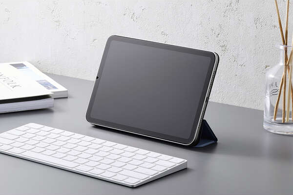 フラップカバーを三つ折りにすることで、動画視聴と、ドローイング・タイピングに最適な2通りの角度で使用できます。
