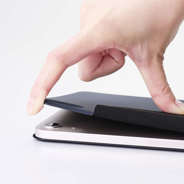 マグネット式の留め具を採用しており、Apple Pencilを収納したままフラップを固定できます。