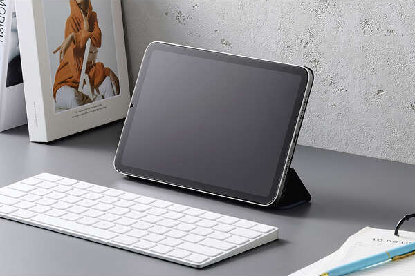 端末本体に内蔵されたマグネットを利用して、簡単に着脱できる超薄型・軽量設計のフラップケースです。動画視聴やタイピング等のシーンに合わせて2アングルにできます。