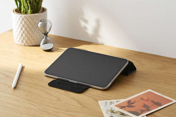 フラップカバーを三つ折りにすることで、動画視聴と、ドローイング・タイピングに最適な2通りの角度で使用できます。