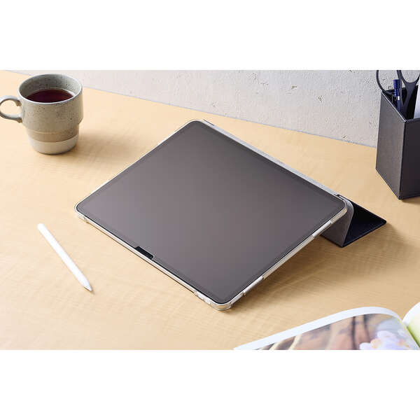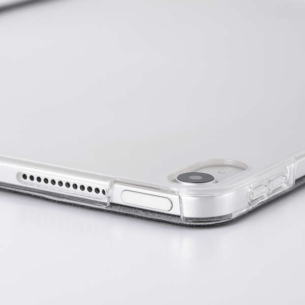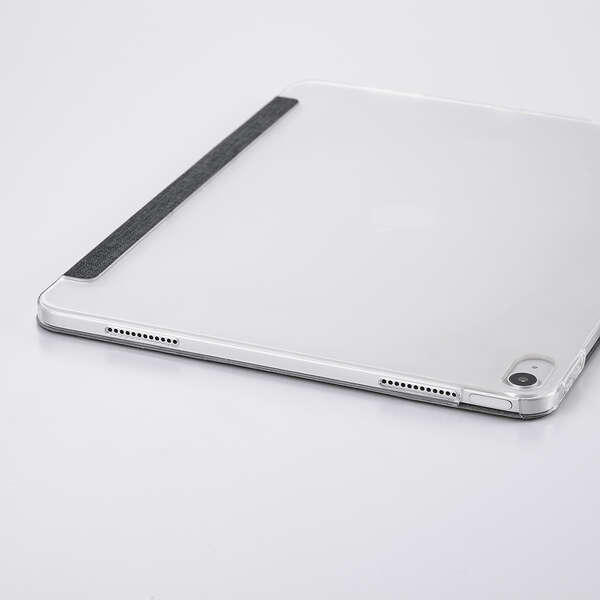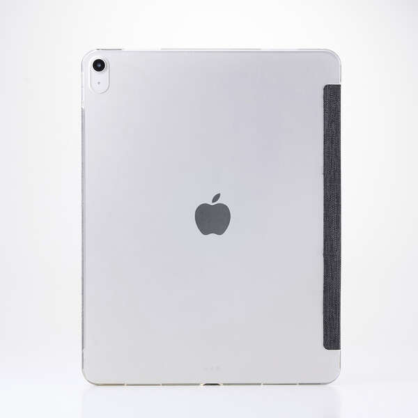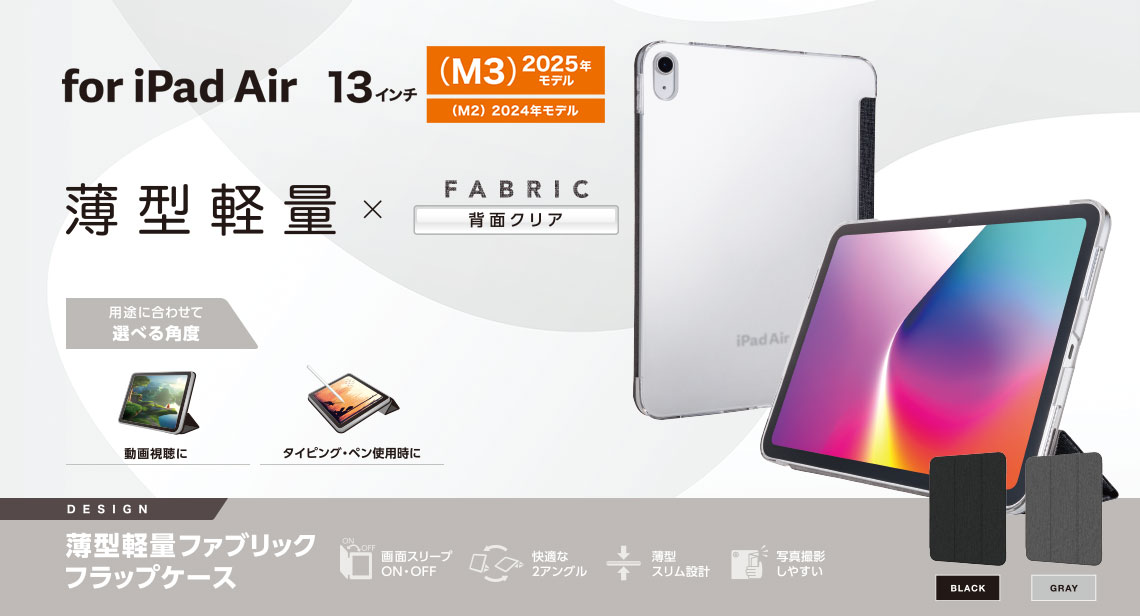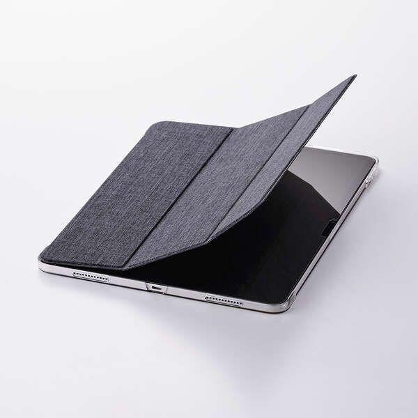 どんなシーンにも使いやすいファブリック生地を採用!軽さを重視する人におすすめの極限まで薄さにこだわったフラップケースです。シーンに合わせて2アングルにできます。端末の背面が見えるクリア素材を採用しています。