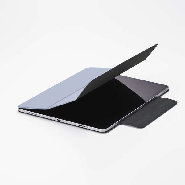 フラップカバーを三つ折りにすることで、動画視聴と、ドローイング・タイピングに最適な2通りの角度で使用できます。