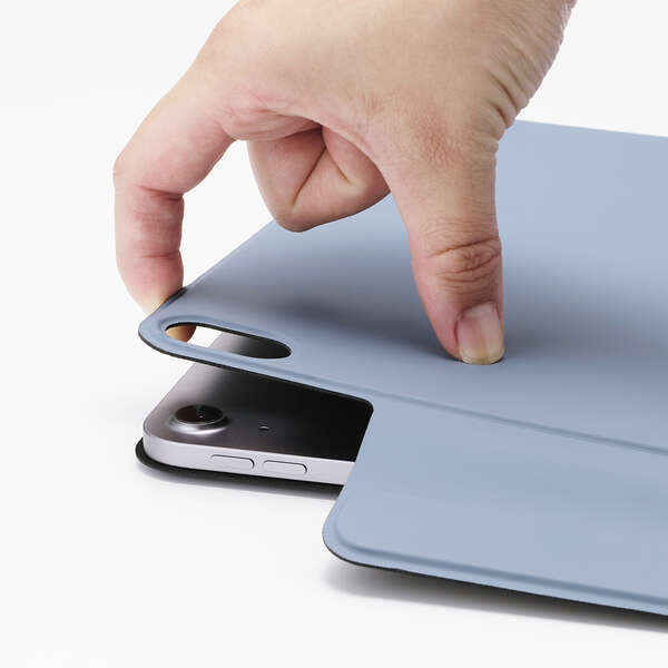 端末本体に内蔵されたマグネットを利用して、簡単に着脱できる超薄型・軽量設計のフラップケースです。動画視聴やタイピング等のシーンに合わせて2アングルにできます。