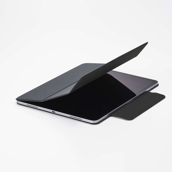 端末本体に内蔵されたマグネットを利用して、簡単に着脱できる超薄型・軽量設計のフラップケースです。動画視聴やタイピング等のシーンに合わせて2アングルにできます。