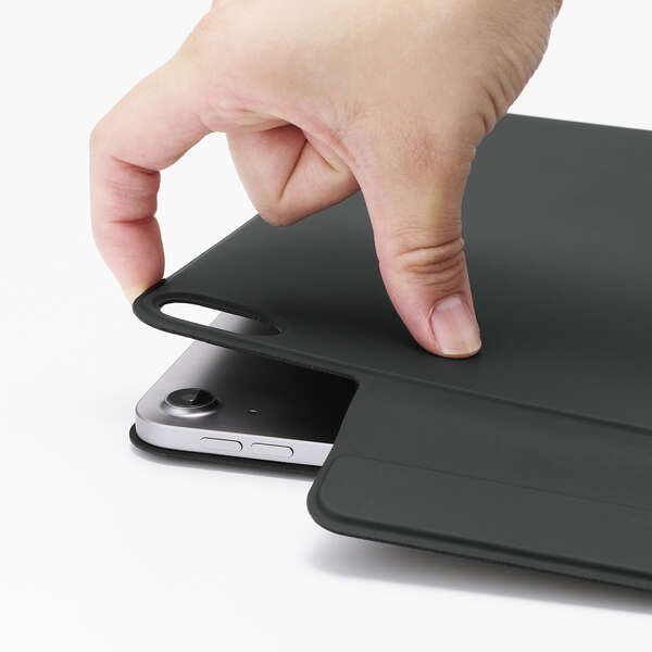 マグネット式の留め具を採用しており、Apple Pencilを収納したままフラップを固定できます。