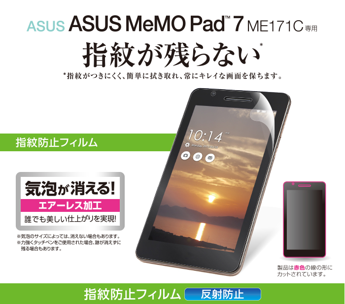 - ASUS MeMO Pad 7 (ME171C)の液晶画面を傷や汚れから守る、指紋防止・反射防止タイプの液晶保護フィルムです。