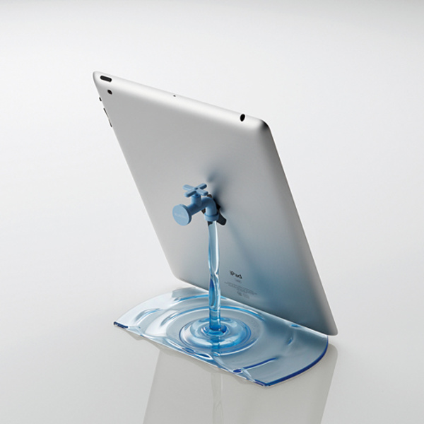 新進気鋭、海外でも著名なデザインオフィス「nendo」とのコラボレーションモデル。蛇口から水が流れ出ている状態をそのまま形にしたタブレットPC用スタンド“JAGUCHI”。