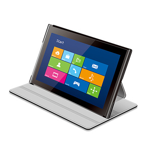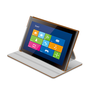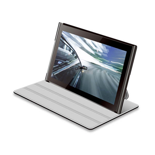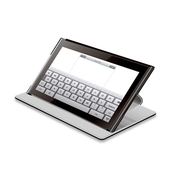 シーンに合わせて角度が選べる4段階調整タイプ。液晶画面部分をカバーするフラップが付いたARROWS TAB用ソフトレザーカバーとフルサイズ液晶保護フィルムのセット。