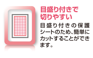 タブレットの液晶画面をキズや汚れから守る、フリーカットタイプの液晶保護フィルムです。画面サイズにぴったり合わせてカットできるフリーカットタイプです。りけいシートに方眼目を印刷しており、ぴったりとサイズを確認可能です。