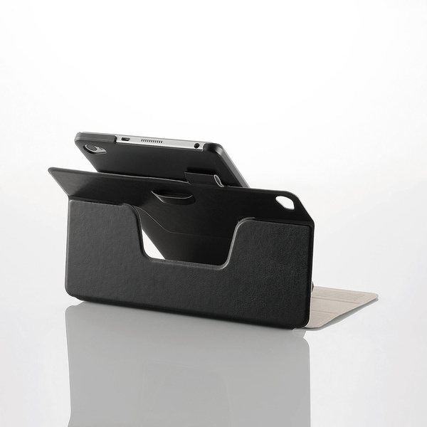 フラップ先端部にある溝で構成されたノンスリップエリアが、浅い角度のスタンド時でも本体を滑らず固定します。