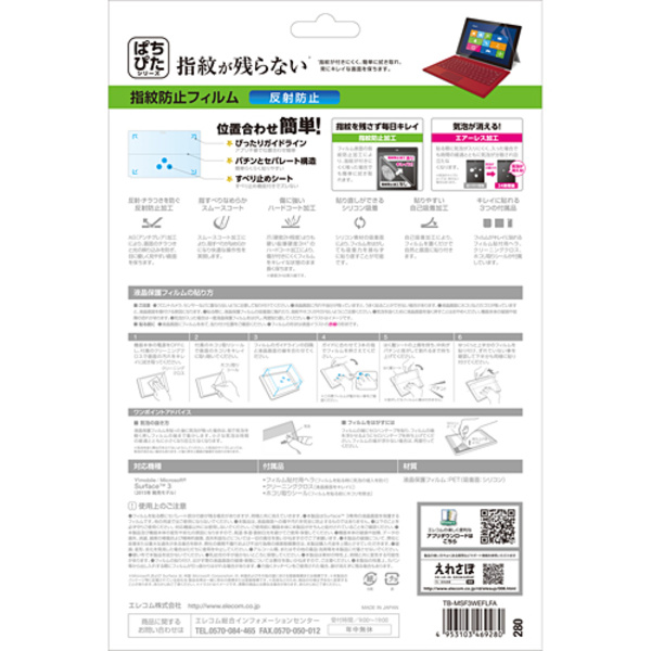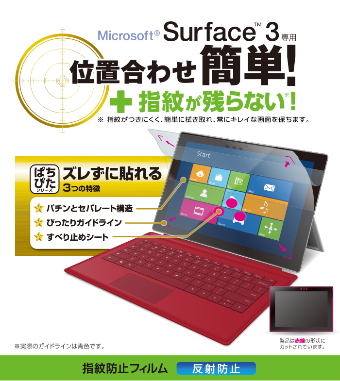 - Microsoft(R) Surface(TM) 3の液晶画面を傷や汚れから守る、指紋防止・反射防止タイプの液晶保護フィルムです。