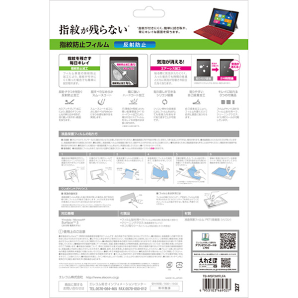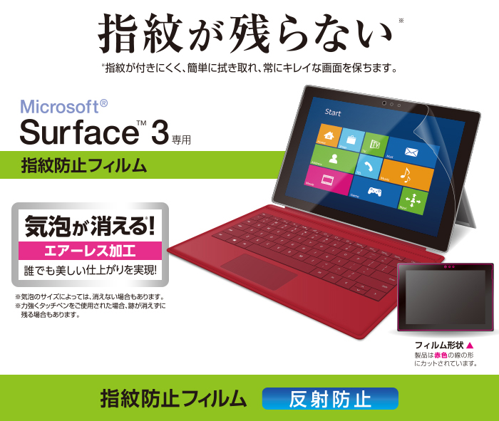 - Microsoft(R) Surface(TM) 3の液晶画面を傷や汚れから守る、指紋防止・反射防止タイプの液晶保護フィルムです。