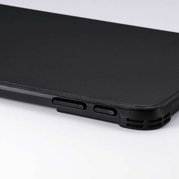 側面には弾力性のあるTPU(熱可塑性ポリウレタン)素材、背面には指紋の付きにくいポリカーボネート素材を使用しています。