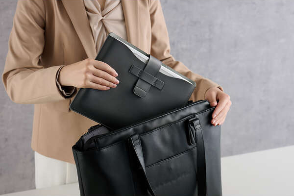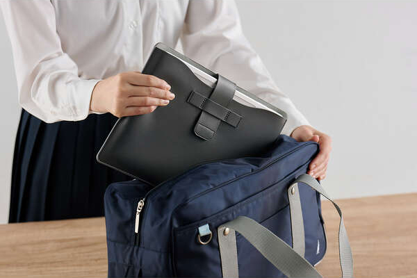別売りのキーボードと端末に合わせたスリム設計で、かばんに入れて持ち運ぶときもスペースを取りません。