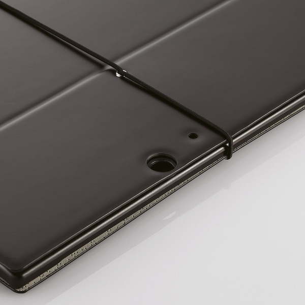 スタイリッシュなゴムベルトがフラップを固定します。