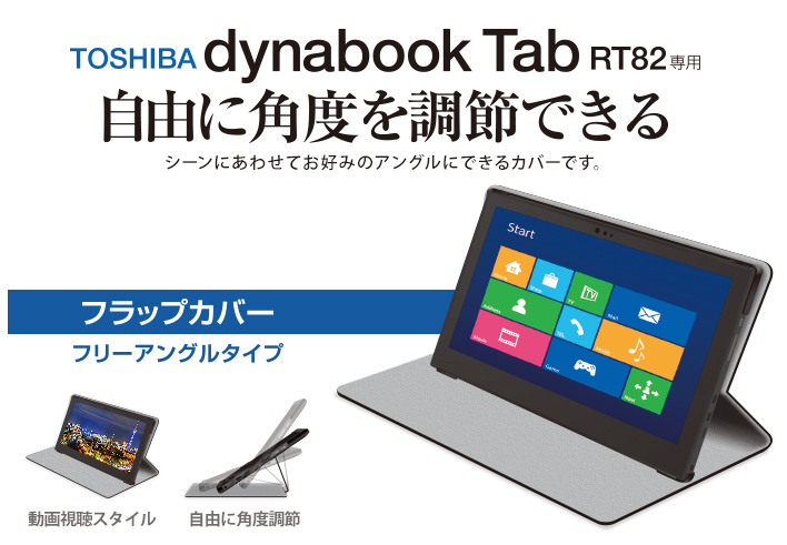 自由な角度を調節できる、スリムなdynabook R82/RT82用フラップカバー
