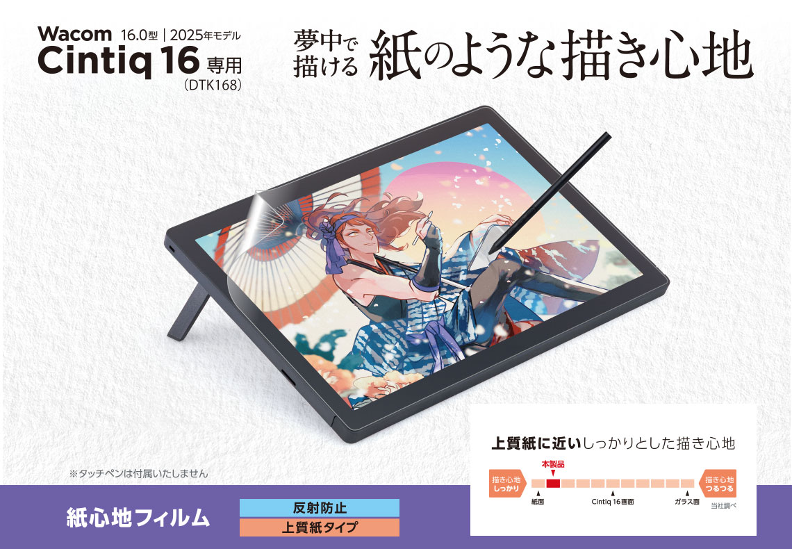 表面特殊加工により上質紙のようにしっかりとした描き心地を実現。すべりすぎないので線画が描きやすい、ペーパーライクフィルムです。