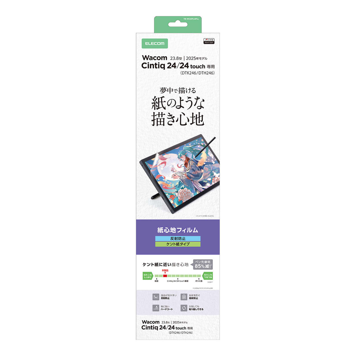 Wacom Cintiq 24 (DTK246)/Wacom Cintiq 24 touch (DTH246)対応の紙心地フィルムです。特殊表面形状デザインによりケント紙に鉛筆で描いたような描き心地を実現します。指紋防止・反射防止タイプで画面を傷や汚れから守ります。