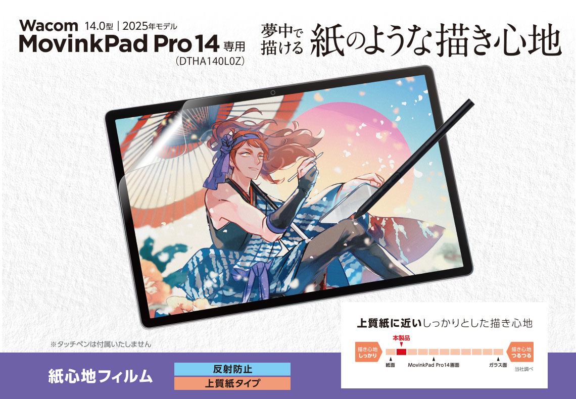 表面特殊加工により上質紙のようにしっかりとした描き心地を実現。すべりすぎないので線画が描きやすい、ペーパーライクフィルムです。