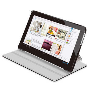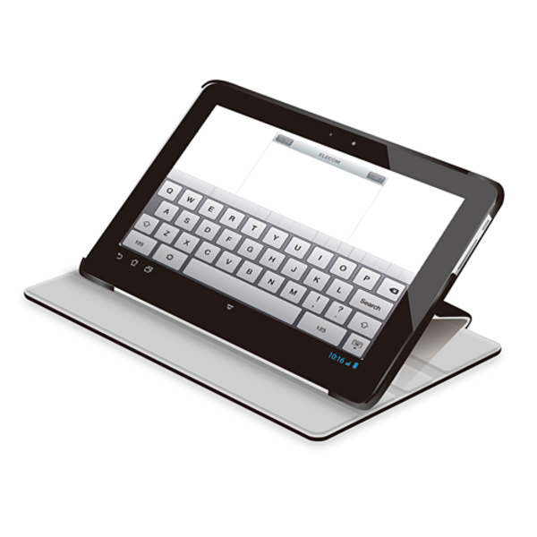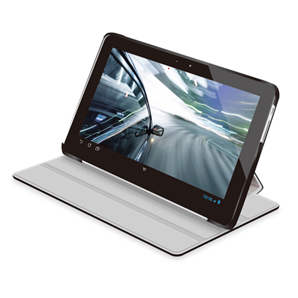 シーンに合わせて角度が選べる4段階調整タイプ。液晶画面部分をカバーするフラップが付いたdocomo dtab 用ソフトレザーカバーとフルサイズ液晶保護フィルムのセット。