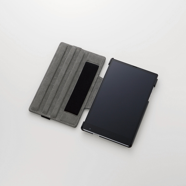 未使用時に液晶画面部分をカバーするフラップが付いています。フラップはベルトで留めることができ、不意に開く心配がありません。