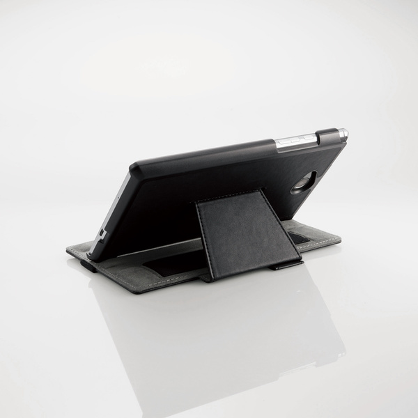 高級感あるソフトレザー素材を使用しながら、シーンに合わせて4段階に角度が選べるdocomo AQUOS PAD SH-05G用ソフトレザーカバーです。