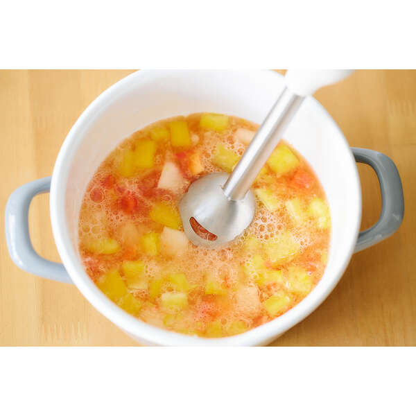 金属製のブレンダー刃は鍋に直接入れられるのでスープ作りもお手軽にでき、においや色移りなく清潔に使えます。