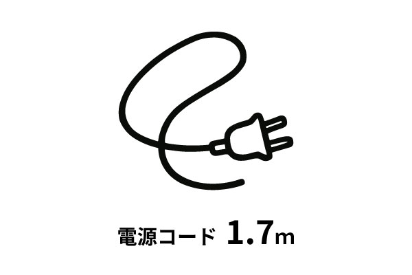 1.7mの電源コードで、コンセントの位置を気にせず、キッチンの好きな場所で使えます。コードが長めだから、無理に引っ張ったり絡まったりする心配も少なく、調理スペースを選びません。