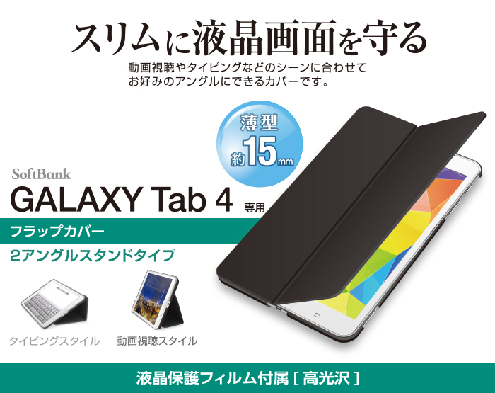 スリムなスタイルを実現したSoftBank GALAXY Tab 4用フラップカバーです。