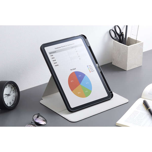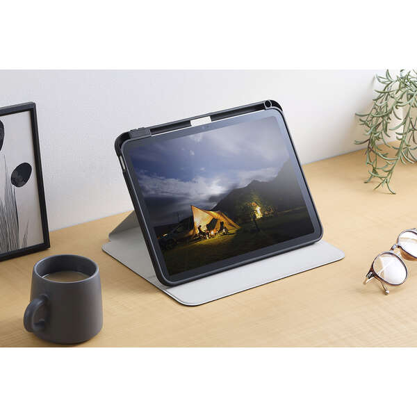 マグネットで簡単着脱!フラップとスタンド部分を分離して使える便利な機能を搭載。360度回転でき、縦向き、横向きのお好きな角度で使用できるiPad(A16)、iPad (第10世代 2022年モデル)用フラップケースです。