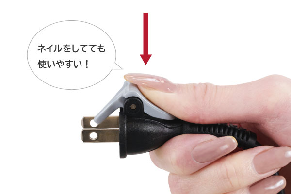 ラク抜きプラグで取り外し簡単。レバーを押すだけでコンセントから簡単に抜くことができます。