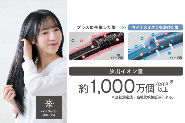 マイナスイオンが髪の広がりの一因となる静電気を低減。髪のツヤもアップします。