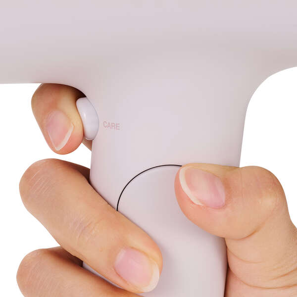 髪をやさしくいたわり、熱ダメージを抑えられる低温風のケアモードを搭載。独立スイッチなので、ワンプッシュで簡単にケアモードに切り替えられます。