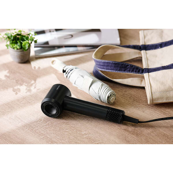 驚くほどの軽さで持ち運びも手軽に。本体質量約280g(※1)で、平均的な折りたたみ傘(※2)よりもコンパクトなI字型ヘアドライヤーです。グリップ内蔵のモーターで重心バランスが良く、手首への負担を軽減。コンパクトながらパワフルな風で、髪の根元からすばやく乾かせます。 ※1:電源コードを除く本体質量 ※2:標準的な3段タイプの折りたたみ傘相当