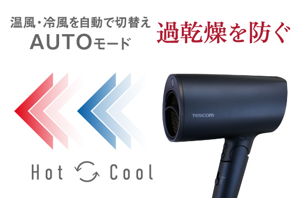 温風と冷風が交互に自動で切り替わります。しっかり乾かしながらも過乾燥を防ぎ、髪の熱ダメージを抑制します。