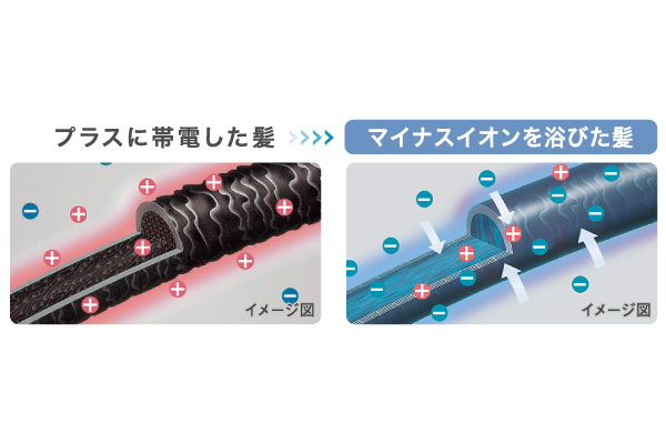 マイナスイオンが髪の広がりの一因となる静電気を低減。髪のツヤもアップします。