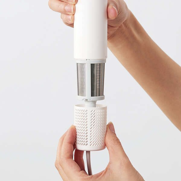 インテリアに馴染むやわらかいデザイン。落ち着いたカラーとマット素材を採用。サークル×I字型のボディデザインが家電っぽさを抑え、インテリアと調和します。