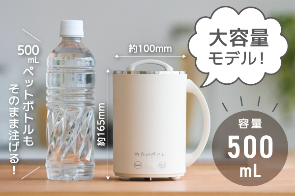 デスクに置いても邪魔にならないサイズと、飲み物もスープもたっぷり楽しめる大容量を両立。1回作って長く楽しめる500mlの大きめモデルです。