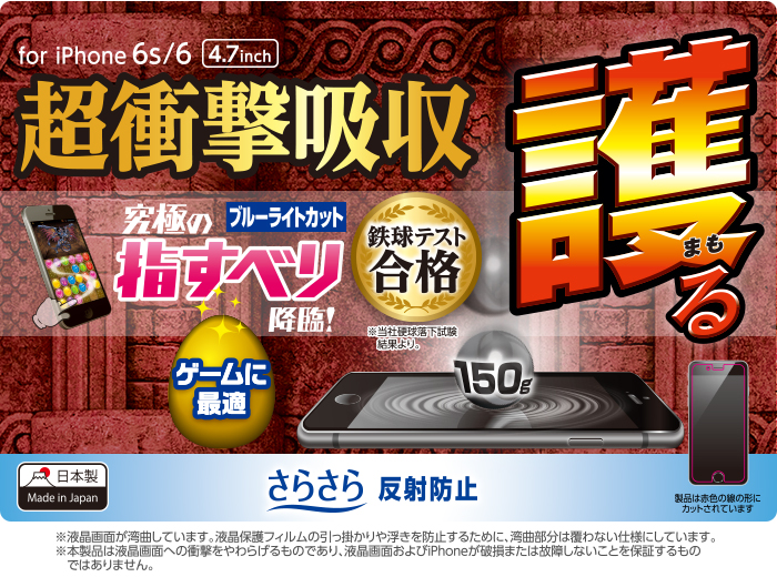 - 特厚シリコン層が衝撃を吸収!耐衝撃に指紋防止・エアーレス・スムースコートの3つの機能を加えたiPhone 6s / iPhone 6用の衝撃吸収フィルム。