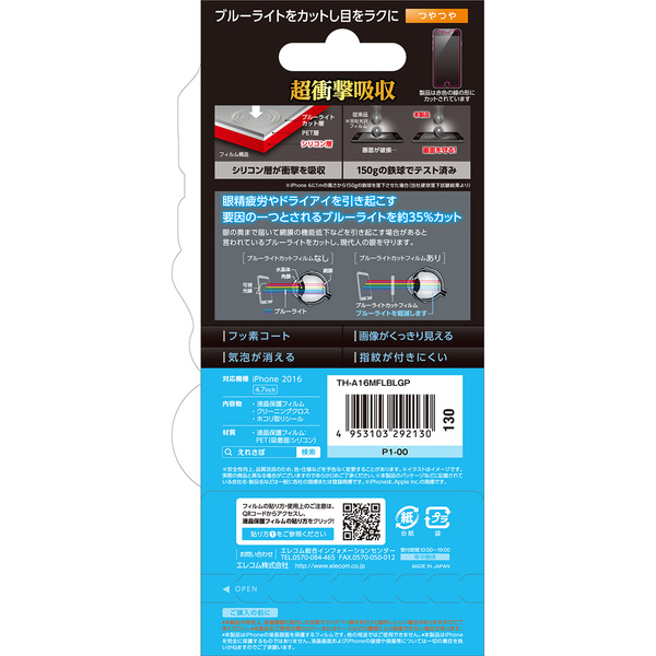iPhone 7用フィルム/衝撃吸収/光沢/BLカット