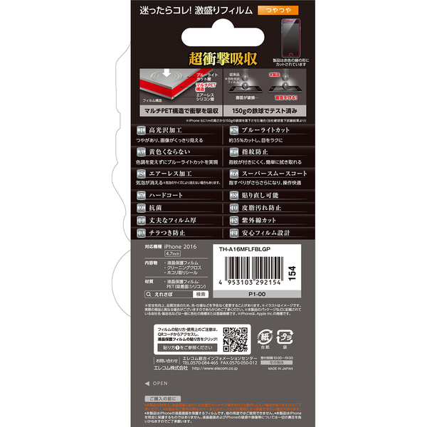 - 特厚シリコン層が衝撃を吸収します。耐衝撃に指紋防止・エアーレス・スムースコートの3つの機能を加えたiPhone 7用の衝撃吸収フィルムです。