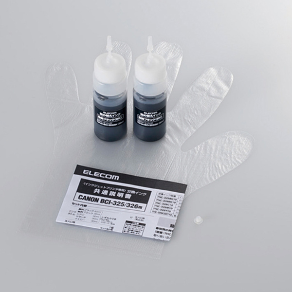 エレコムのキヤノン用詰め替えインク「THC-326BK5」専用の交換インクです。キヤノン「BCI-326BK」インクタンクに対応しています。
