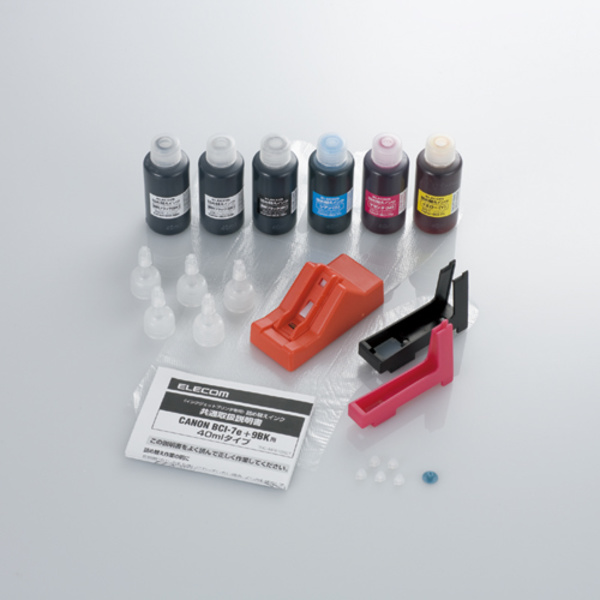 これ1つで5色×4回交換可能!プリンタのランニングコストをぐんと抑える、キヤノンBCI-7e+9BKカートリッジ対応の詰め替えインクとリセッターのセット。