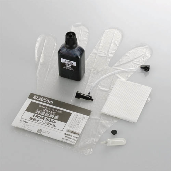 エプソン製インクジェットプリンタカートリッジ「ICBK32」に対応した詰め替えインクです。※専用の詰め替え工具が別途必要です。
