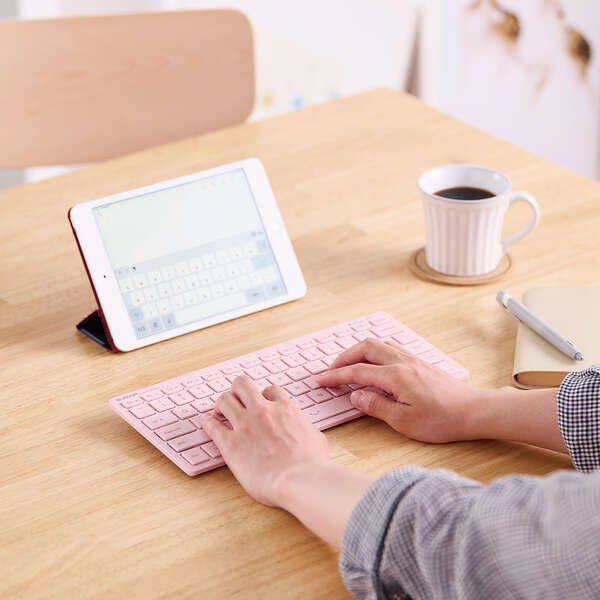 持ち運びに便利な薄型・軽量設計! マルチペアリング機能により、1つのキーボードで最大3台までのデバイスを瞬時に切り替えて使用できるBluetooth(R)パンタグラフミニキーボード。