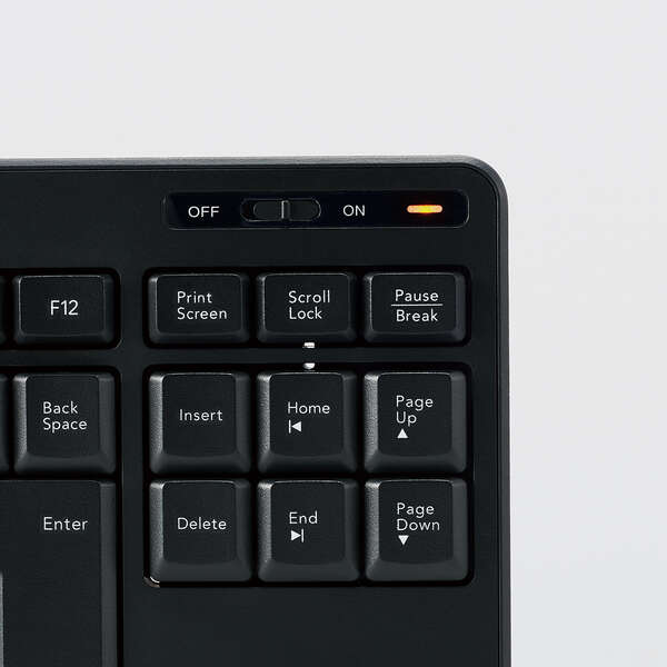 音が気になる場所や時間帯での使用に最適なワイヤレスタイプの静音コンパクトキーボードです。デスク周りのスペースを有効に使えるテンキーレスタイプです。
