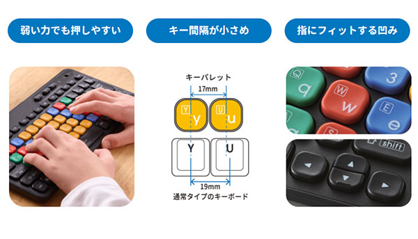 子どもの手の大きさに合わせた、タブレットなどでも使用しやすい17mmピッチのコンパクト設計です。