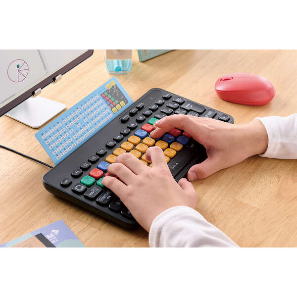 正しいキー入力が楽しく覚えられる、パソコン学習用キーボード“KEY PALETTO(キーパレット)”です。
