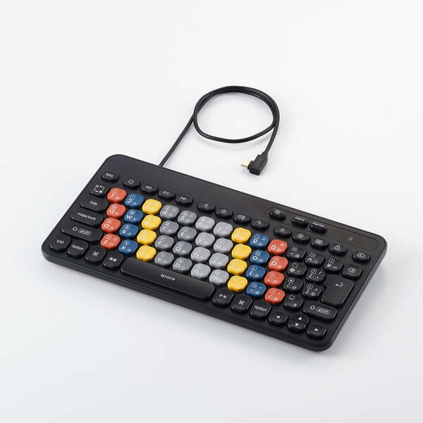 押し間違いによる混乱を避けるため、ひらがな印字や使用頻度の低い機能を取り除き、よりスムーズにキーボード操作を学習できるよう配慮。プログラミングやタブレット学習に特化した機能を盛り込んだ、独自の日本語配列(JIS)を採用しています。