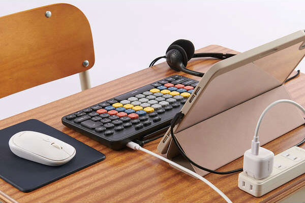 iPadに直接接続できるUSB Type-C(TM)有線接続モデルです。L字型コネクターで、iPadからケーブルが飛び出しづらい設計です。